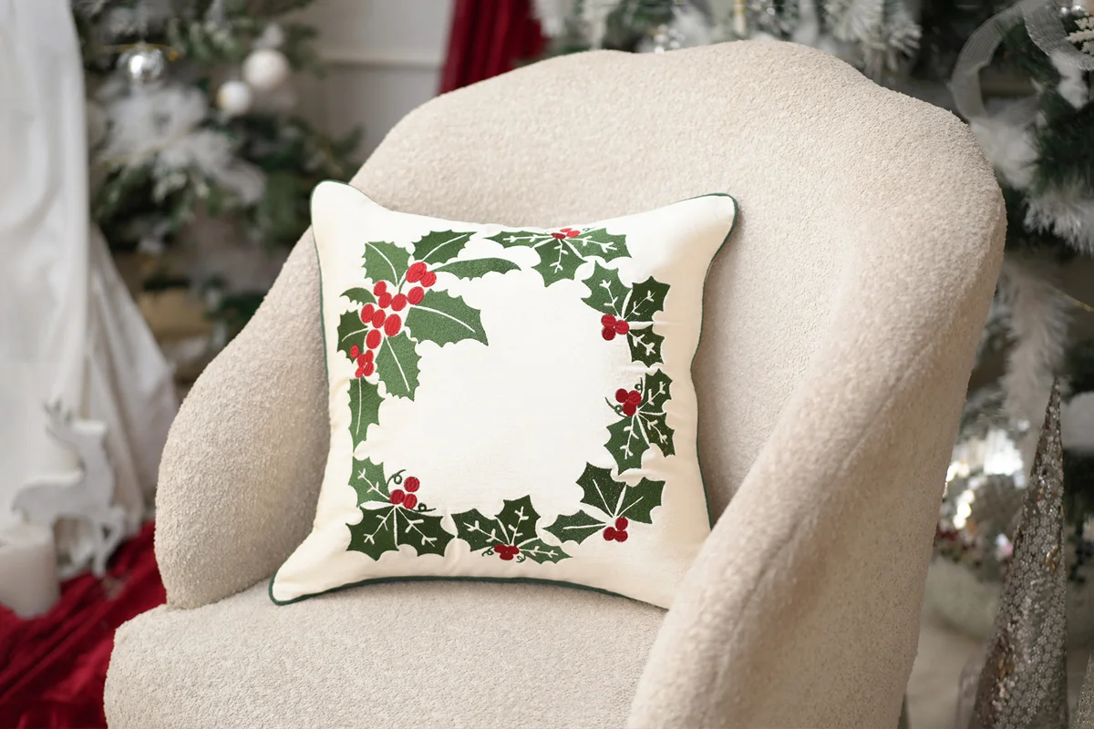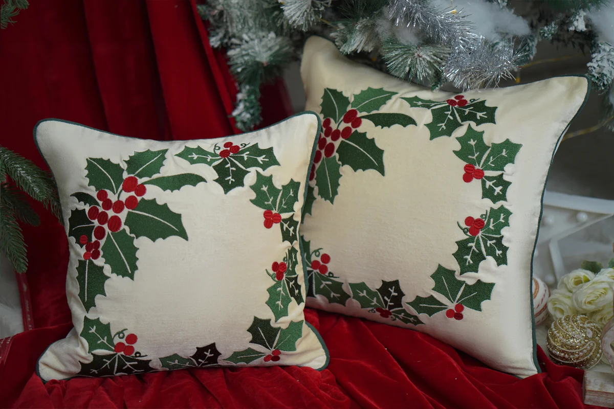 Celebrate the timeless charm of Christmas with The Magical Wreath Cushion Cover. Inspired by the festive garlands and wreaths that adorn homes during the holidays, this cushion is a masterpiece of intricate embroidery and metallic accents. The deep velvet fabric provides a rich, luxurious backdrop, enhancing the elegance of the design. Perfect for adding a sophisticated touch to your living space, this cushion symbolizes togetherness, warmth, and the joy of the holiday season. Whether placed on a sofa, armchair, or bed, it brings a festive glow that makes every corner of your home feel special.
